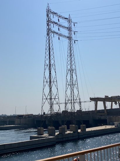 We passed through a lock on the Nile at the older, smaller Aswan dam, not the High Dam that created Lake Nasser. On the left above, we see the water from the turbines re-entering the Nile and (right) wires delivering electricity. I took these for the Alabama Power guys in the Society.